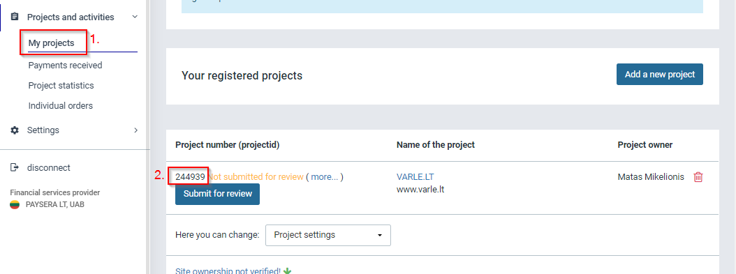 You will be able to submit a Paysera project for review only after integration. This will be reported by the responsible manager.